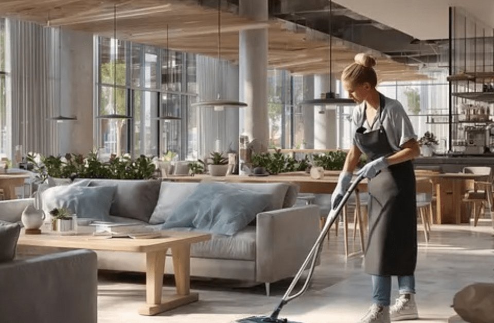 Environmentally friendly cleaning products are used to maintain healthy spaces without harmful chemicals.